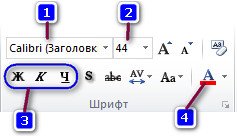 Для зміни Шрифту потрібно з вкладки Основне обрати пункт позначений цифрою …
