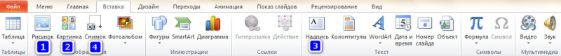 Для вставлення Текстового напису потрібно з вкладки Вставлення обрати пункт позначений цифрою …