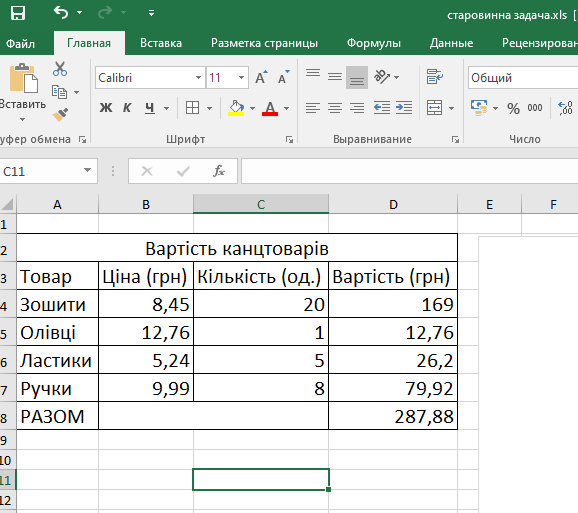 Яким буде результат копіювання вниз за допомогою маркера автозаповнення тексту Школа 11 в наступній клітинці?