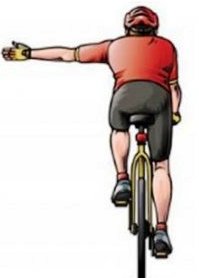Познач, як велосипедист подає сигнал про зупинку