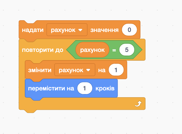 Скільки разів виконається команда "Перемістити на 1 кроків"?