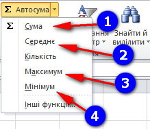 Для обчислення середнього арифметичного потрібно обрати функцію позначений цифрою …