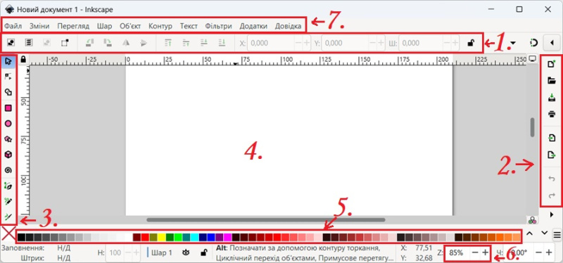 Вкажіть на Палітру кольорів у вікні векторного графічного редактора Inkscape.