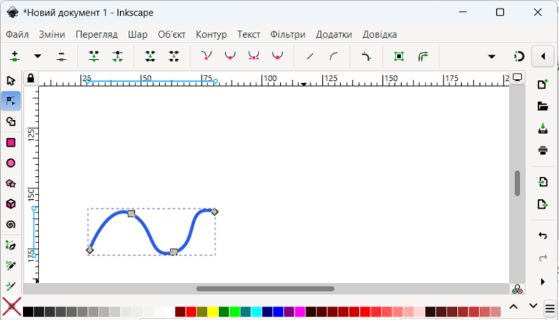 Форму кривої в подальшому можна змінити за допомогою інструмента Вузол. Після вибору цього інструмента вздовж кривої будуть відображені вузли, які можна переміщувати, щоб отримати криву необхідної форми.