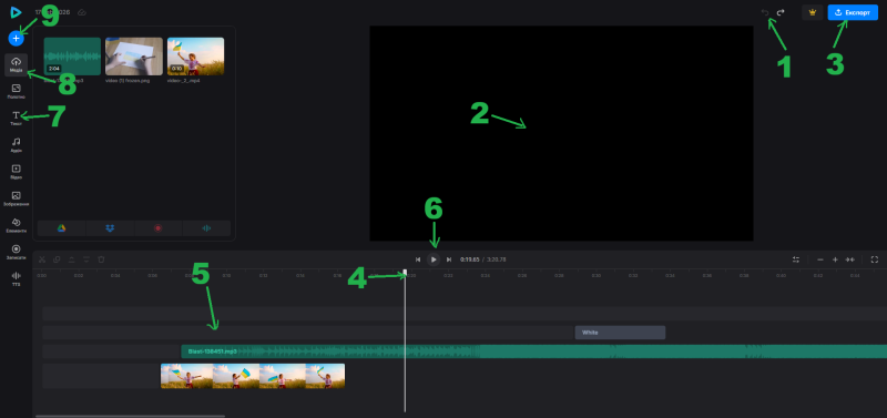 Монтажна доріжка (це «лінія часу», де ми розміщуємо відео, звук і текст) - ?