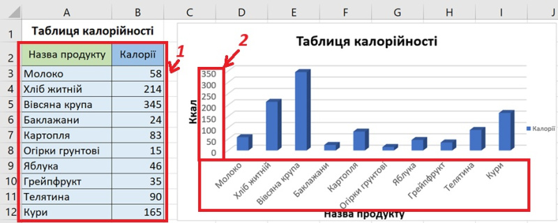 Вкажіть на дані для побудови діаграми