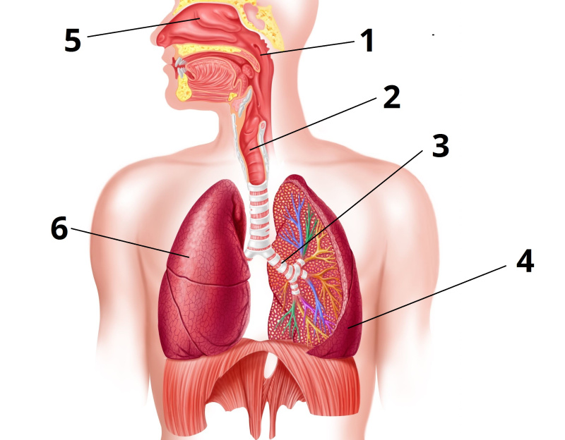 Вибери, під яким номером на зображенні дихальної системи людини представлено легені
