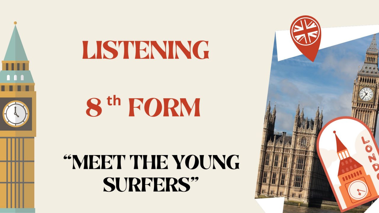 Before doing the test you have to listen to the text " Meet the Young Surfers" twice