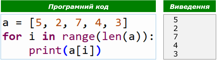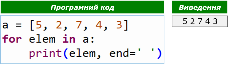 Якщо потрібно вивести елементи списку в стовпець або рядок, використовують поелементне виведення.