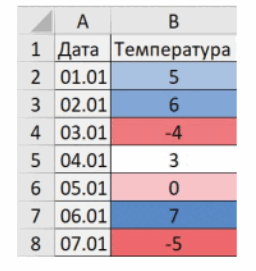 Який тип умовного форматування використаний для позначення даних на рисунку?