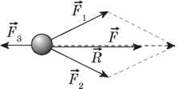 На тіло діють три сили. Вектор імпульсу має напрям: