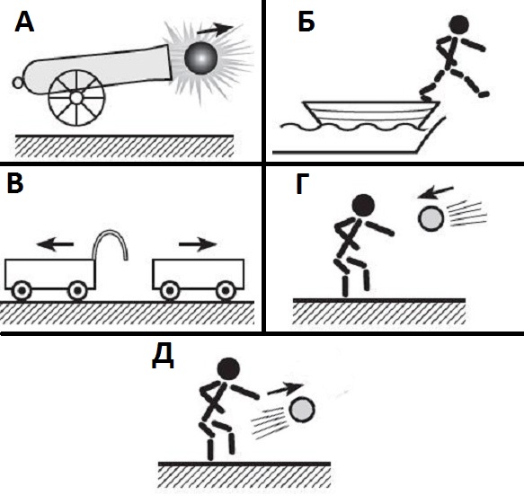 На зображенні наведено 5 ситуацій взаємодії тіл. Вкажіть випадки, в яких систему тіл можна вважати замкненою: