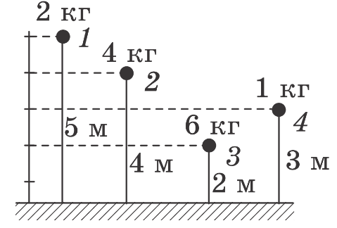 Яке з наведених на рисунку тіл має найбільшу потенціальну енергію відносно Землі?