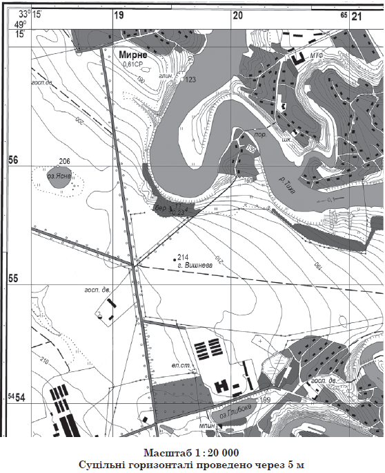 Визначте відносну висоту (в метрах) урізу води озера Ясного щодо урізу води в річці Тихій.