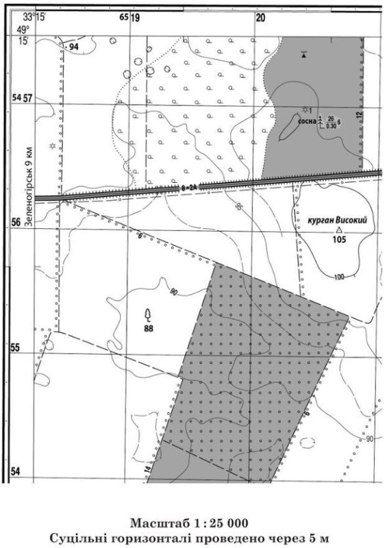 Знайдіть на карті точку з максимальною абсолютною висотою на цій місцевості та укажіть цю висоту (у метрах).