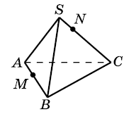 Дано зображення піраміди SABC . Яке взаємне розміщення прямих АB і SВ?