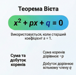 Приклад запитання: Чому дорівнює сума коренів рівняння?