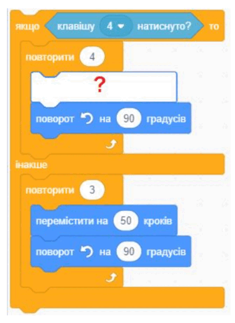 Намалювати квадрат, якщо натиснуто клавішу 4, і трикутник, якщо натиснуто інші клавіши.