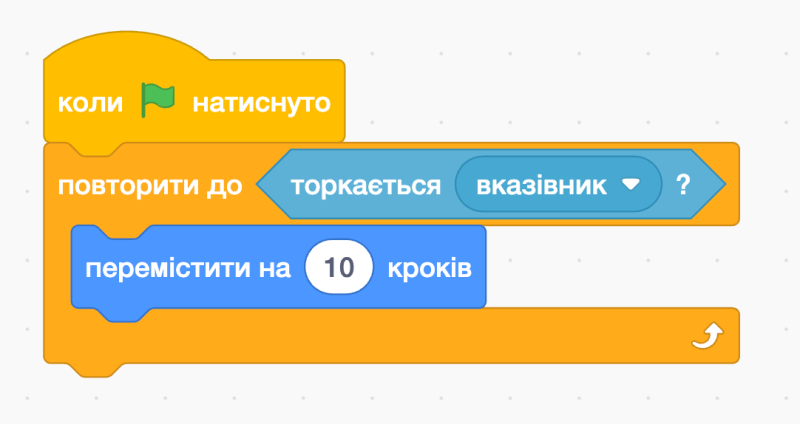Спрайт рухається вперед на 10 кроків і цей рух повторюється, поки він не торкнеться краю. Який тип циклу тут використано?