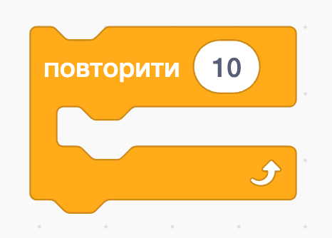 Вкажи на команду для створення циклічних алгоритмів з визначеною кількістю повторень у середовищі Скретч