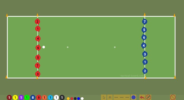На якій схемі зображено правильну побудову/розстановку команд при виконанні "пулу" (початку гри )?
