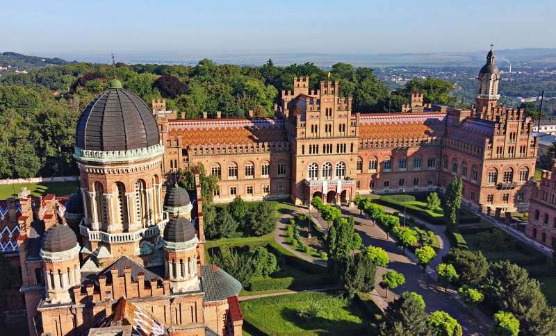 Оберіть серед зображень ансамбль резиденції буковинських митрополітів в Чернівцях (декілька вірних відповідей)