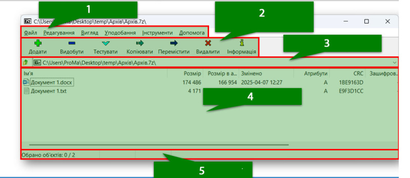 Вкажіть на Робоче поле у вікні програми 7-zip