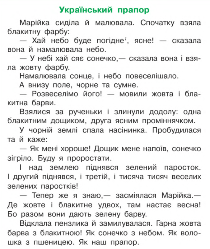 З чим дівчинка порівняла наш прапор наприкінці тексту?