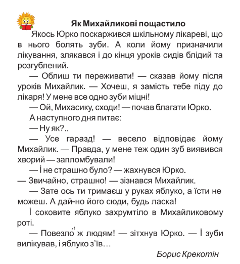 Хто поскаржився шкільному лікареві на біль у зубах?