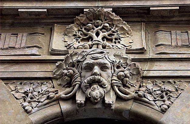 На якій світлині зображено архітектурний елемент маскарон