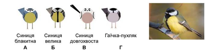 1. Установіть за допомогою такого графічного визначника, який з видів синиць зображений на світлині.