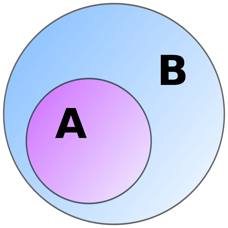 На якому з малюнків множина А є підмножиною множини В.