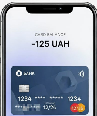 Яка з наведених множин чисел відноситься до значення балансу (у UAH) на банківській картці, зображеній на рисунку?