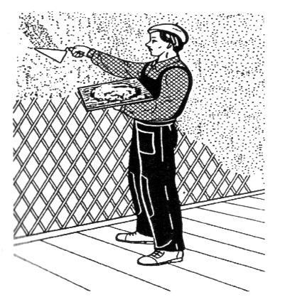 На малюнку зображено "накидання штукатурного розчину "