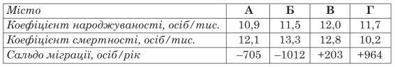 Проаналізуйте статистичну інформацію (див. таблицю) і вкажіть місто, у якому наведені показники демографічної ситуації найбільше впливали впродовж року на зростання вартості оренди житла.