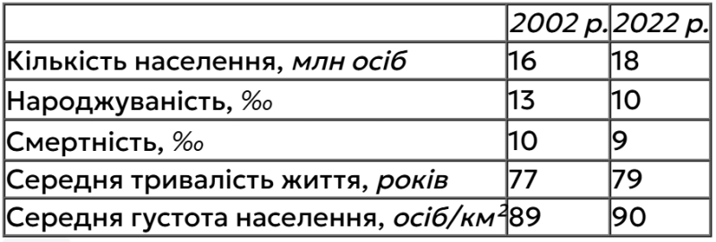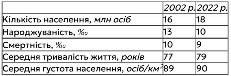 За наведеною в таблиці інформацією щодо населення однієї з країн світу визначте природний приріст (у проміле) населення цієї країни 2022 р.