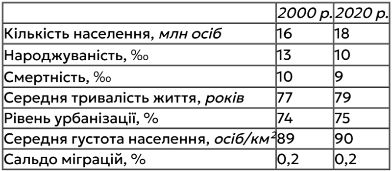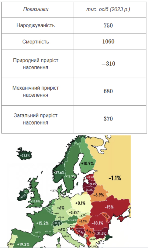 Проаналізуйте наведені в таблиці демографічні показники Німеччини2023 р., які відображають тенденції природного й механічного руху населення попередніх тридцяти років.