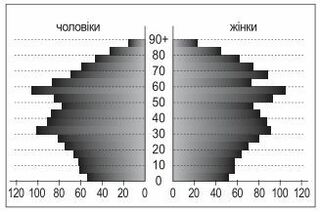 Проаналізуйте статево-вікову піраміду країни. Спрогнозуйте соціально-економічні проблеми та дії уряду цієї країни за умови збереження теперішніх демографічних тенденцій.