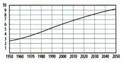 На графіку відображено зростання з 1950 р. до 2050 р. (прогноз) одного з показників, що характеризує населення світу, а саме