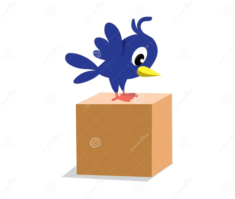 The bird is ... the box.