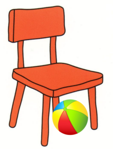 The ball is ... the chair.