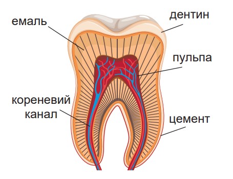Розгляньте малюнок зуба. Виберіть, які структури підписані неправильно.