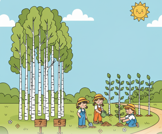 У парку росло 7 беріз. Навесні там посадили ще 5 беріз. Скільки беріз росте в парку?