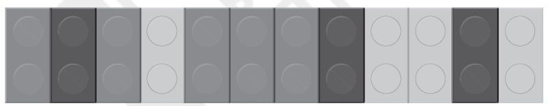 За малюнком з’ясуй і вибери, яку частину ряду становлять світло-сірі, сірі і темно-сірі цеглинки Лего.
