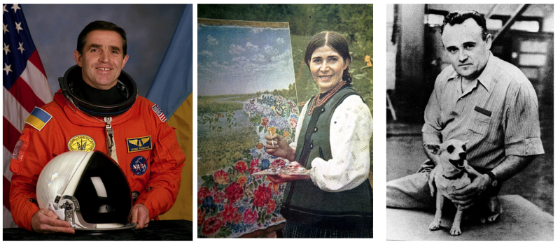 Обери рядок, де правильно написано прізвища та імена відомих українців з фото