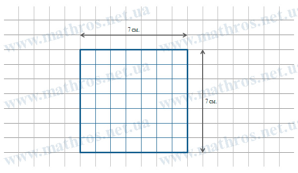 Довжина сторони квадрата 7 см. Обчисли периметр квадрата.
