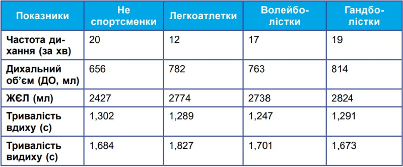 Проаналізуйте таблицю показників дихальної системи в жінок. Оберіть правильні відповіді.