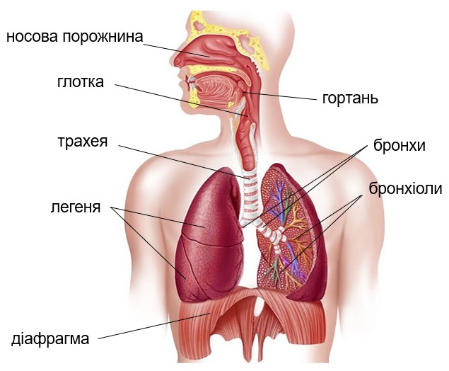 Розгляньте малюнок «Будова дихальної системи людини». Знайдіть помилкові підписи.
