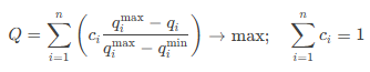 Лінійне згортання норманованих критеріїв Qi має вигляд: