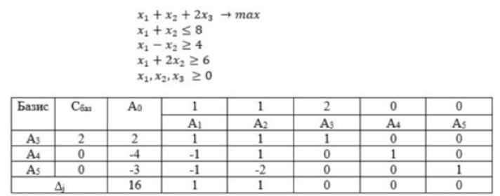 В результаті вирішення задачі лінійного програмування на максимум симплекс методом отримана наступна симплекс таблиця.